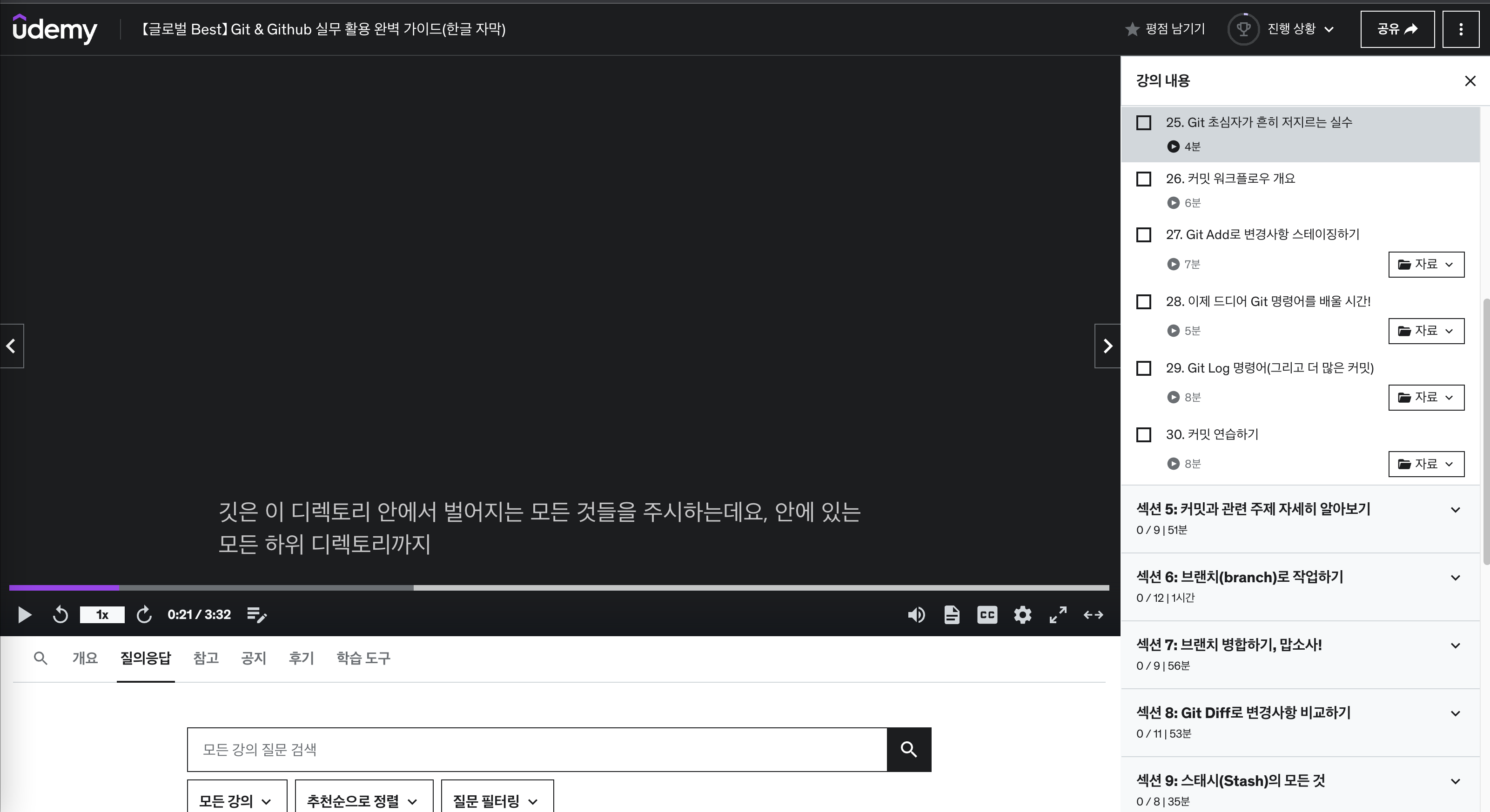 깃의 기본적인 내용은 알지만 자세한 강의를 듣고 공부하고자 신청했고, 차근차근 듣고 있습니다.
