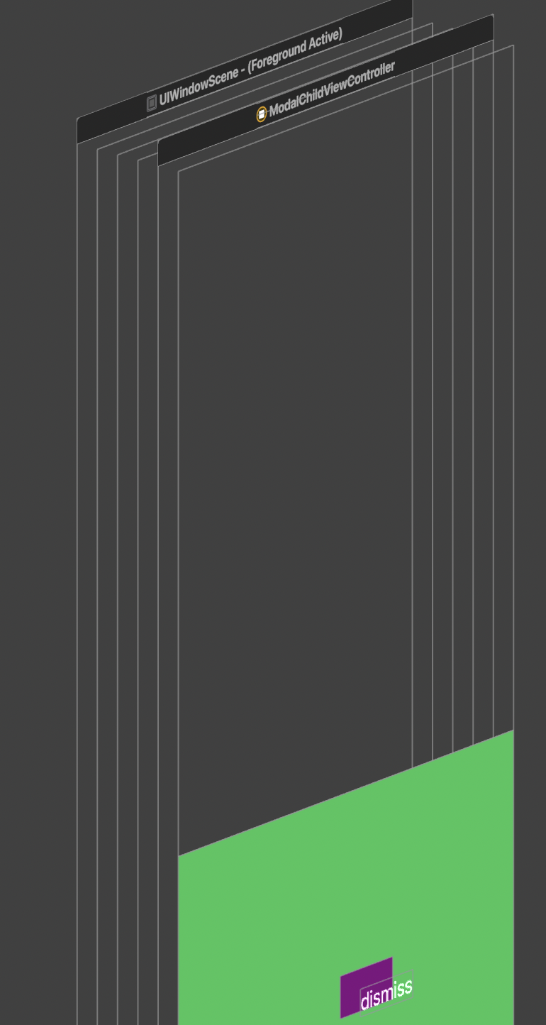첨부한 Hierarchy를 참고해보면 이미 부모 VC는 보이지 않고 그 뒤에 윈도우씬이 보이네요. 즉 fullScreen은 부모를 보여주지 않는 것으로 보입니다.