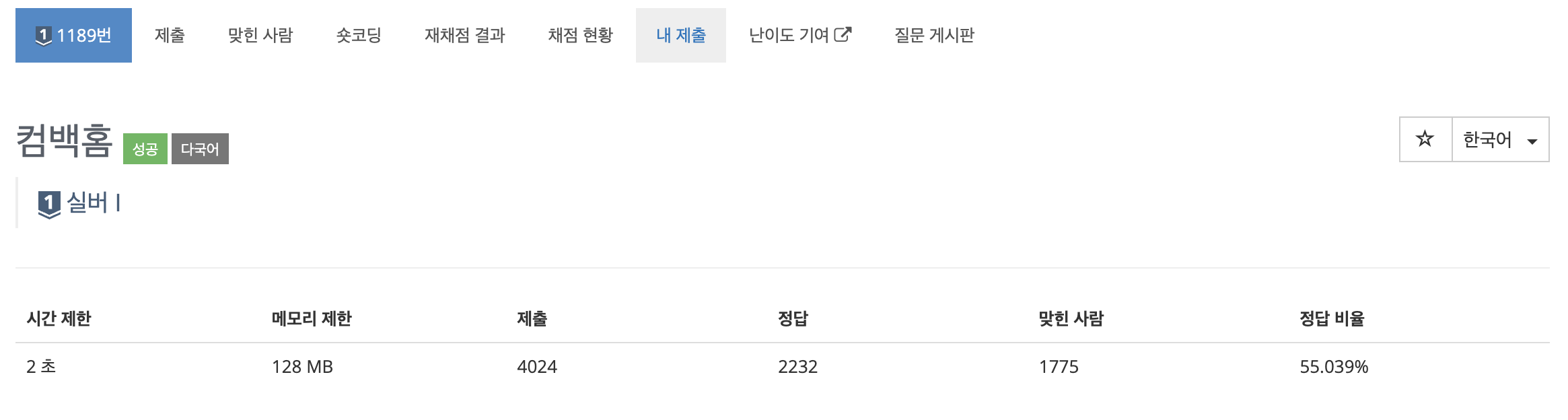 난이도가 쉬운편이었는데 실버1이네요? 정답률도 높구요! (개꿀문제라는 뜻)