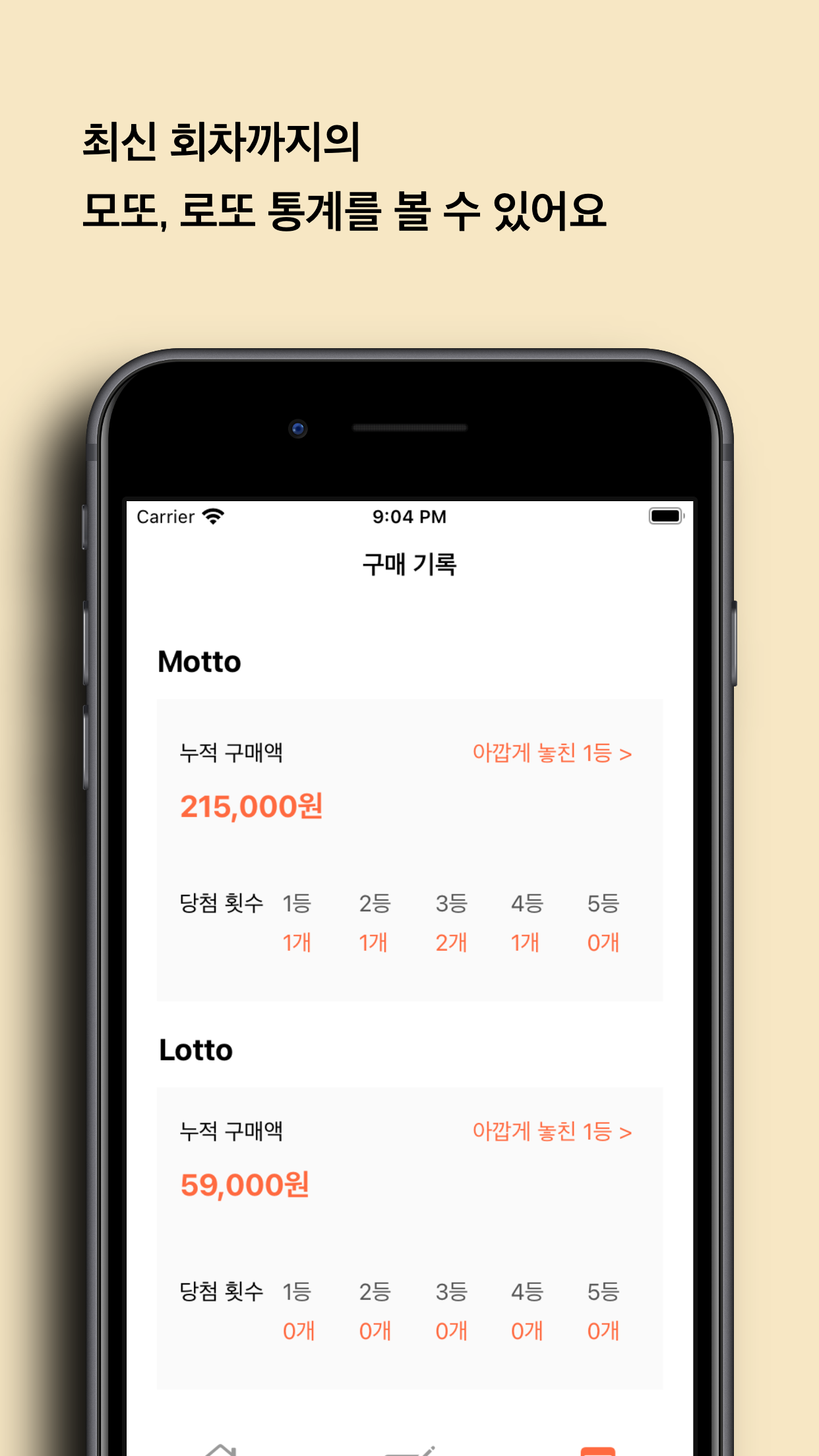 - 총 얼마 어치의 모또를 샀을까요? 또 그중에서 당첨된 게임은 몇 개일까요? 한눈에 확인이 가능해요
