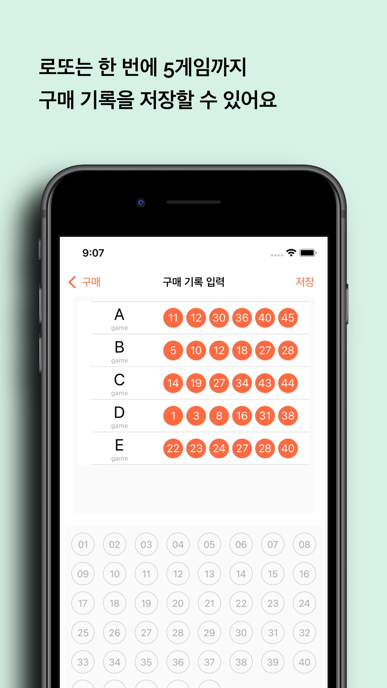 - 내돈 내산! 로또 기록이 가능합니다. 한번에 최대 5개의 게임까지 저장이 가능합니다. 저장된 정보는 로또 용지처럼 확인 할 수 있어요