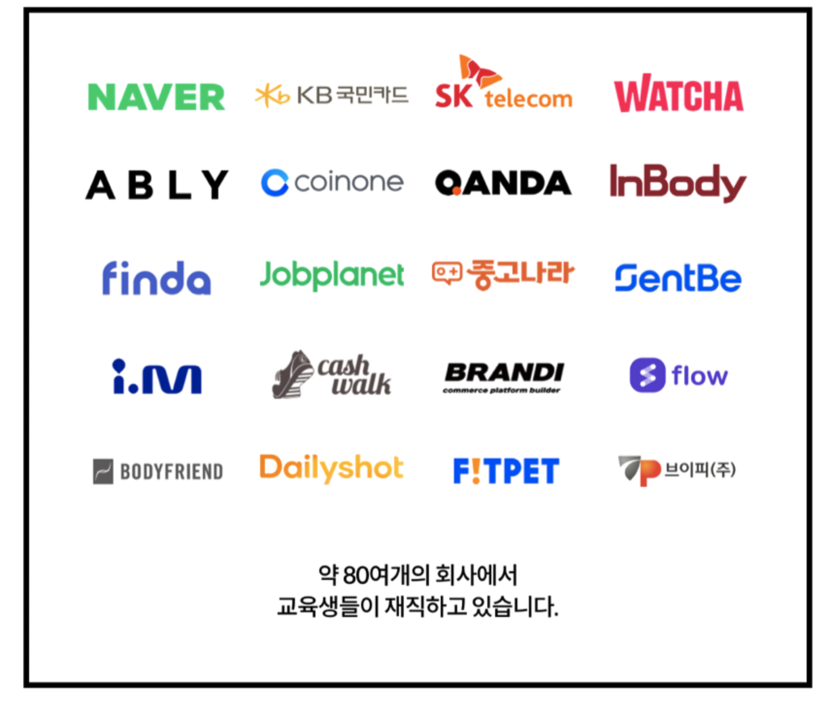 물론 '아 나라에서 운영 하는거면 별로겠네 안해~~ 안봐도 뻔하다' 라고 하실거죠? 근데 진짜일까요?? 물론 처음에 1기로 모집을 할때 저와 제 동기분들도 같은 생각을 안가지고 있었다면 거짓말입니다. (몇 백만원씩 내고 하는 부트캠프도 있는데 거기가 더 좋겠지... 이런 생각 가졌습니다 저도 알아요^^) 그럼 제일 확실한 취업 결과를 볼까요??