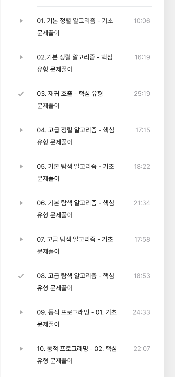 알고리즘 유형별로 정리되어서 기초 - 핵심 유형 순으로 탄탄하게 난이도를 올려가면서 문제를 풀어볼 수 있습니다. 저같은 경우에는 난이도 hard 이상은 듣지 않고 medium 정도까지의 난이도만 들었습니다(골드 낮은 정도?의 난이도였습니다.) 강의는 사실 직접 문제를 다 풀지는 않고 어떻게 어떻게 풀면 되겠다고 머릿속으로 고민하고 해설을 바로 들었습니다. 그래도 요즘 공부를 쫌 했다고 방향성이 맞는 경우가 많았답니다 😆