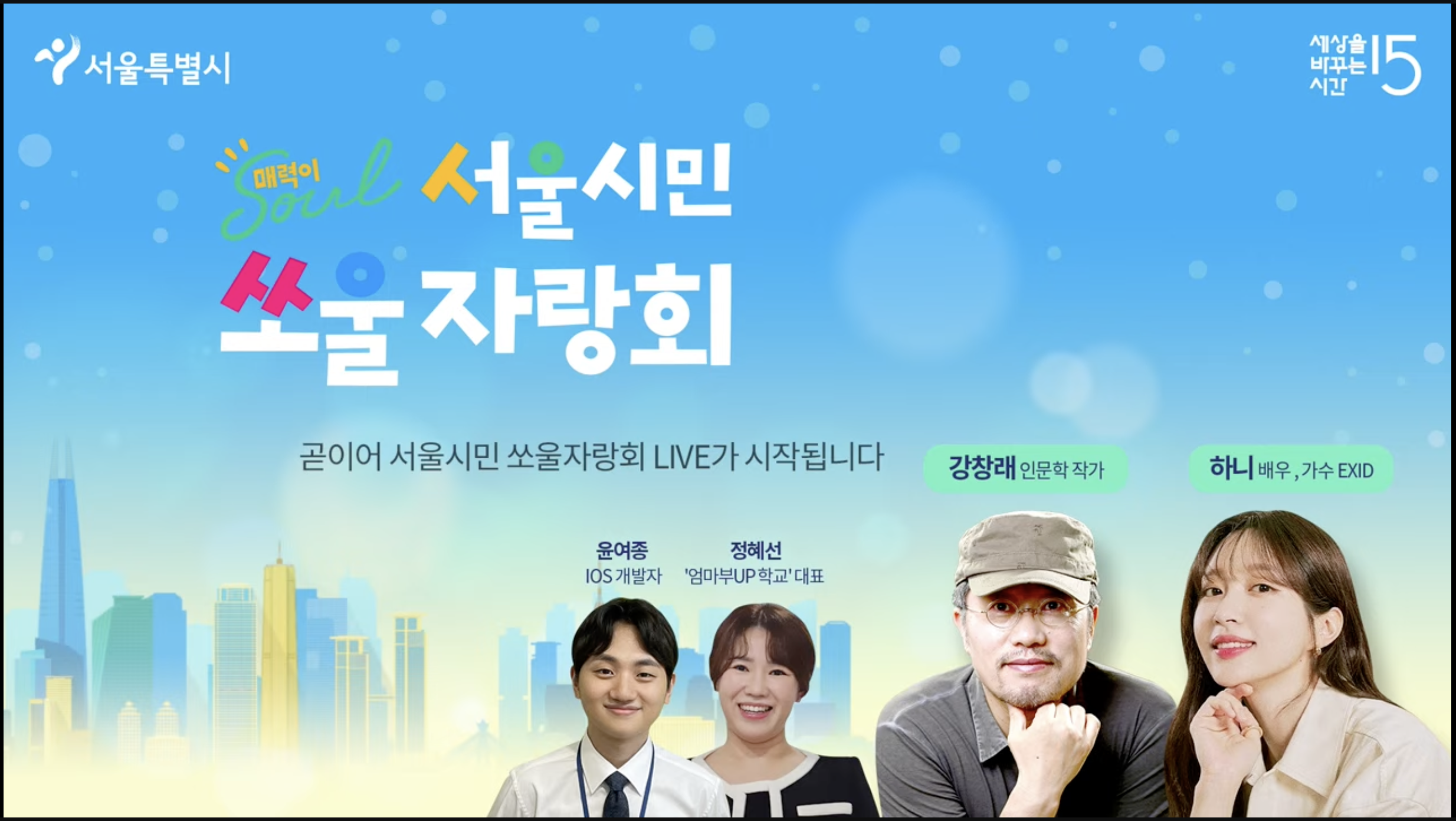 세바시에는 많은 분들이 아시다시피 대단한 분들의 강연이 많은데요, 최근에는 서울시와 함께하는 ‘서울시민 쏘울(Soul) 자랑회’를 통해 너무 대단한 분들의 이야기보다는 서울 시민들의 이야기를 풀어보는 것을 목표로 했기 때문에 제가 참여할 수 있었습니다.