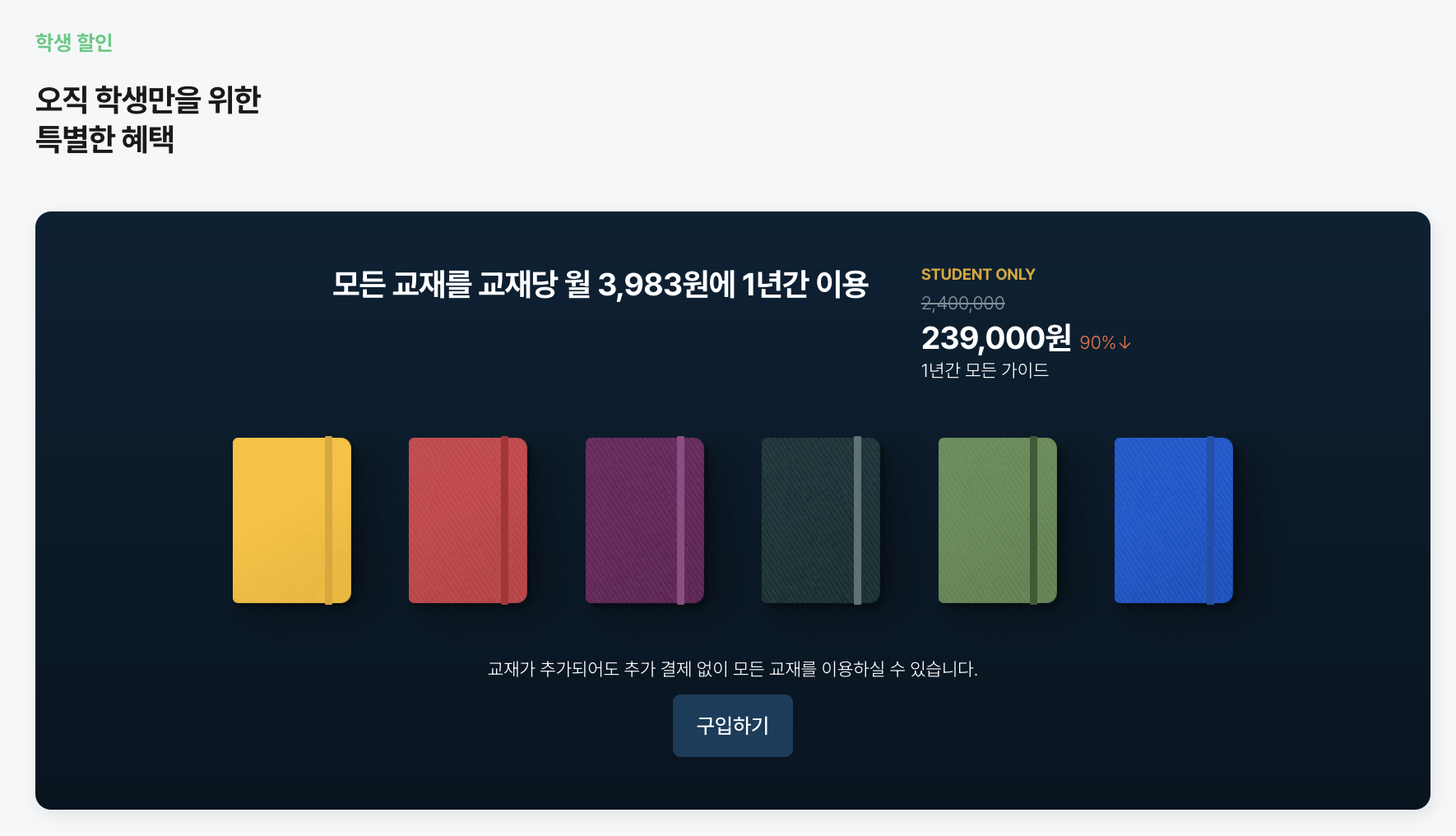 프로그래밍 기초 이외의 커리큘럼은 유료이긴 하지만 보상판매도 있고 학생 혜택도 있어서 엄청 비싸다는 느낌은 아니었답니다!