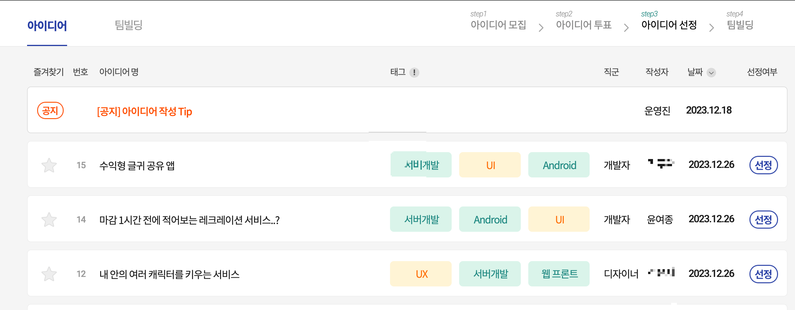 그래서 고민끝에 '없으면 내가 한다' 마인드로 또 아이디어를 발제했고 운좋게 선정되었습니다.