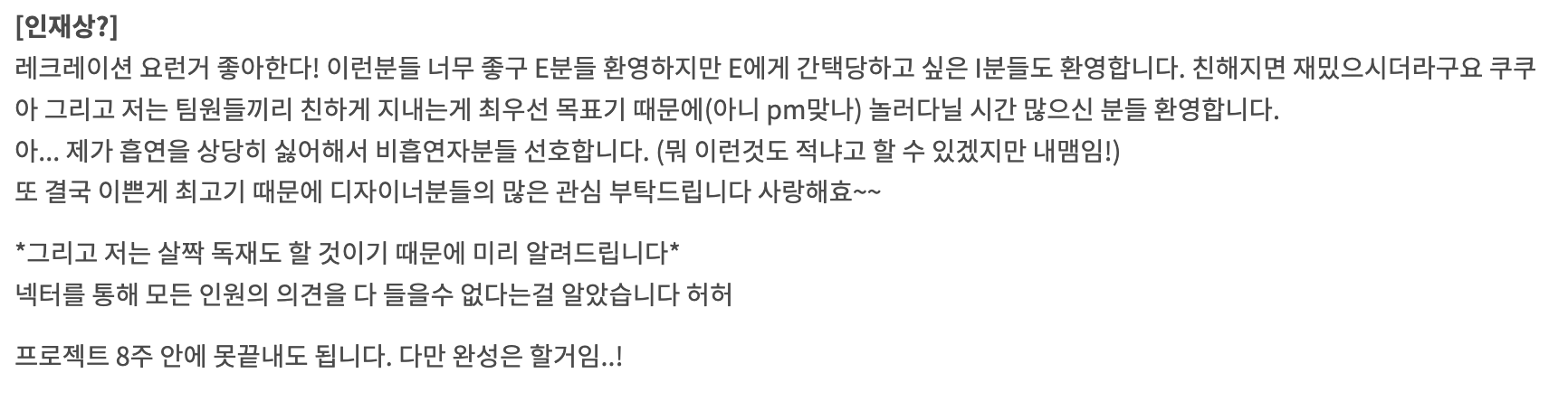 사실 PM을 해보고 싶다는 생각은 있었지만 '아직은 준비가 덜 되지 않았나...?' 라는 생각으로 다음 기수인 25기에 PM으로 참여하려고 했는데요. (또 넥터 하냐고 물어보지 마세요... 저 25년까지 할거니까 말리지 마셈) 또 가만히 못있는 성격 덕분에 PM에 도전하게 되었습니다.